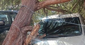 Cae árbol sobre un vehículo estacionado en el fraccionamiento Los Encinos