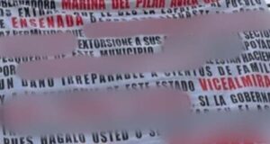 Colocan mantas alusivas a presuntas extorsiones al sector pesquero en Ensenada