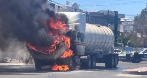 Tráiler se incendia al circular por la avenida Delante en Ensenada