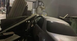 Conductor huye tras impactar vehículo estacionado, cerco y barda de negocio...