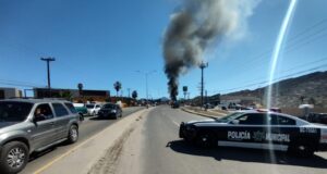 Incendio de almacén provoca cierre de tramo carretero en Ensenada