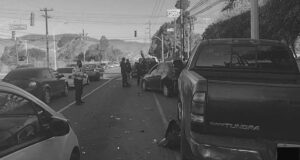 Conductor impacta motocicleta de la Policía Municipal y otros vehículos estacionados...