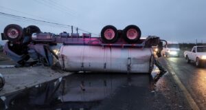 Al ser impactada por camión, pipa protagoniza volcadura en el Tramo...