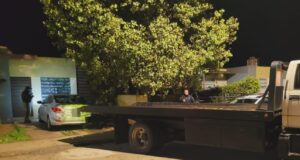 Policías auxilian a conductor tras sufrir una ponchadura en el sur de San Quintín
