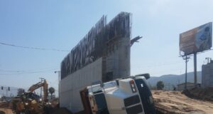 Vuelca camión en medio de las obras en el nodo vial...
