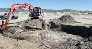 Entierran a ballena varada en las costas de Ensenada