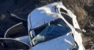 Abandonan vehículo tras volcadura en San Vicente