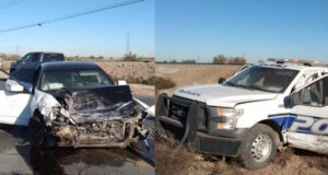 Choca patrulla contra vehículo en persecución, uno resultó lesionado
