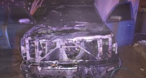 Incendio consume vehículo en patio de San Vicente