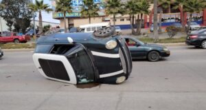 Provoca choque, sufre volcadura y se da a la fuga en...