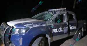 Policías sufren volcadura al intentar evadir a una vaca al sur...