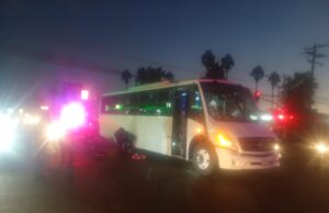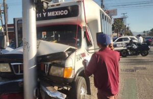 Microbús atropella a mujer, impacta vehículo y semáforo en Ensenada