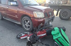 Ensenada.- Un motociclista distribuidor de comida resultó lesionado tras ser impactado por un automovilista en Chapultepec, en l ciudad de Ensenada.
