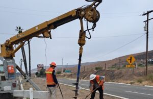 En la carretera San Miguel-Ensenada colocaron 50 postes de fibras sintéticas e instalan más de 120 luminarias