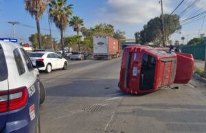 Joven sufre volcadura tras impactar vehículos estacionados en Ensenada
