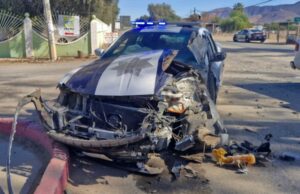 Ensenada.- Tras no detener su marcha en un alto, una patrulla de Seguridad Pública Municipal se impactó contra una...