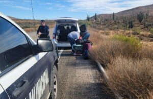 San Quintín.– Tras quedarse sin combustible al circular en las inmediaciones de El Rosario, agentes de la Policía...