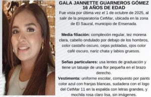 Ensenada.- La joven Gala Jannette Guarneros Gómez, de 16 años de edad, fue vista por última vez el...