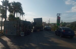 Volcadura de tráiler obstruye el tránsito en El Sauzal