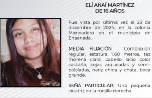 Ensenada, Baja California.- La Fiscalía General del Estado pide apoyo para localizar a Elí Anaí Martínez, de 16...