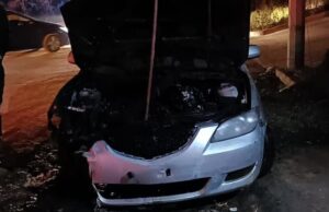 Incendian vehículo en calle de Cumbres de la Presa, en Ensenada