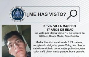 San Quintín.- La Fiscalía General del Estado solicita apoyo para localizar a Kevin Villa Macedo, de 17 años de edad,...