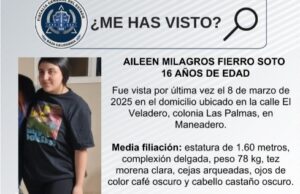 Ensenada.- La Fiscalía General del Estado solicita apoyo para localizar a Aileen Milagros Fierro...