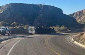 Trailero sufre volcadura en inmediaciones de Punta Prieta en el sur...