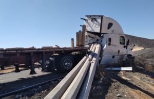 San Quintín.- Un tractocamión que transportaba postes de la Comisión Federal de Electricidad (CFE) sufrió un...