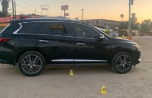 Agentes Investigadores analizan una unidad Infinity Tipo Qx60 abandonada en el lugar