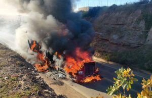 Sujetos armados incendian tráiler en cuesta de Camalú