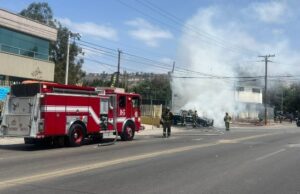 Patrulla se incendia mientras circulaban en avenida de Tijuana