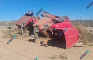 Trailero sufre volcadura en inmediaciones de Punta Prieta en el sur...