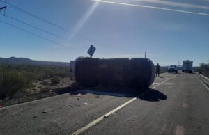 Conductor sufre volcadura en troque en las inmediaciones de Punta Prieta...