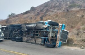 Ensenada.- Un tractocamión cargado de tomate perdió el control al descender de la curva conocida como “Los Cocos”, al...
