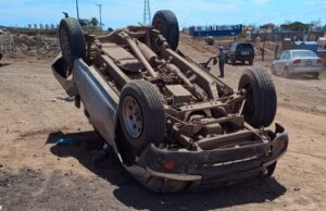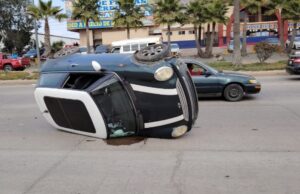 Ensenada.- Un vehículo de la marca Mazda protagonizó esta mañana una volcadura en la carretera...