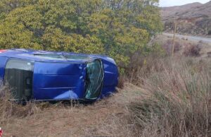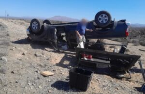 Estadounidense sufre volcadura mientras conducía al sur de San Quintín