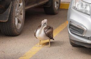 Rescatan a pelícano desorientado en el Centro de Gobierno de San...